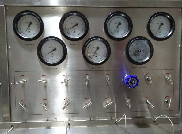 This device mainly consists of extraction kettle, separation kettle, fine distillation column, CO2 high pressure pump, entrainer pump, refrigeration system, heat exchange system, purifying system, pressure stabilizing system of extraction kettle, CO2 tank, flow meter, temperature and pressure control( protection) system etc.